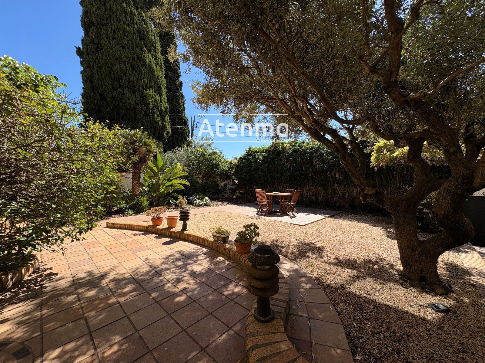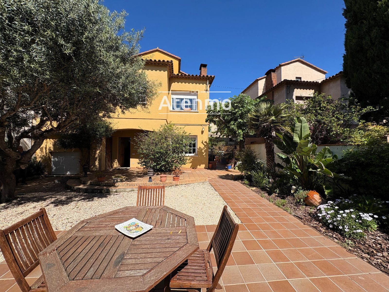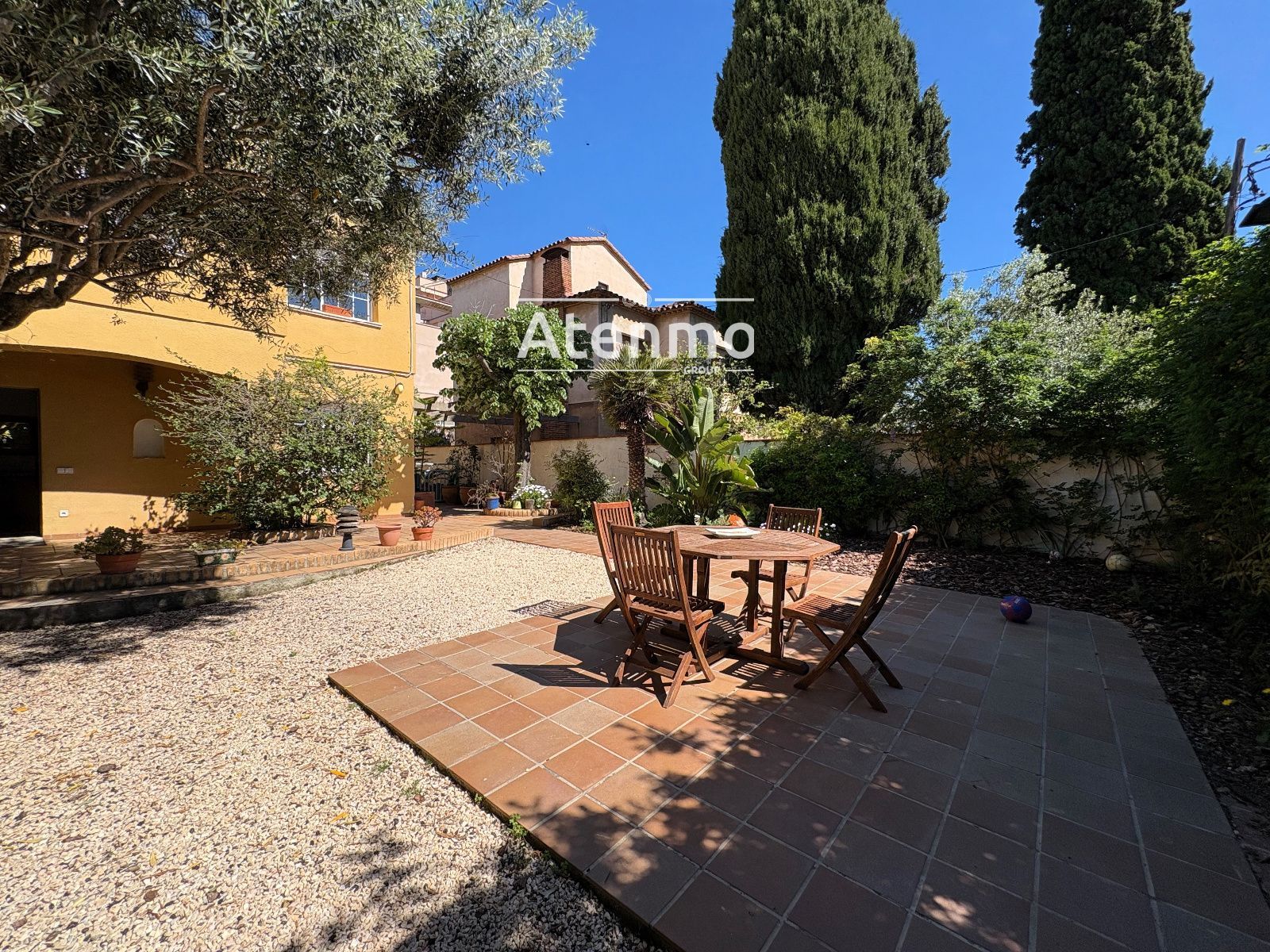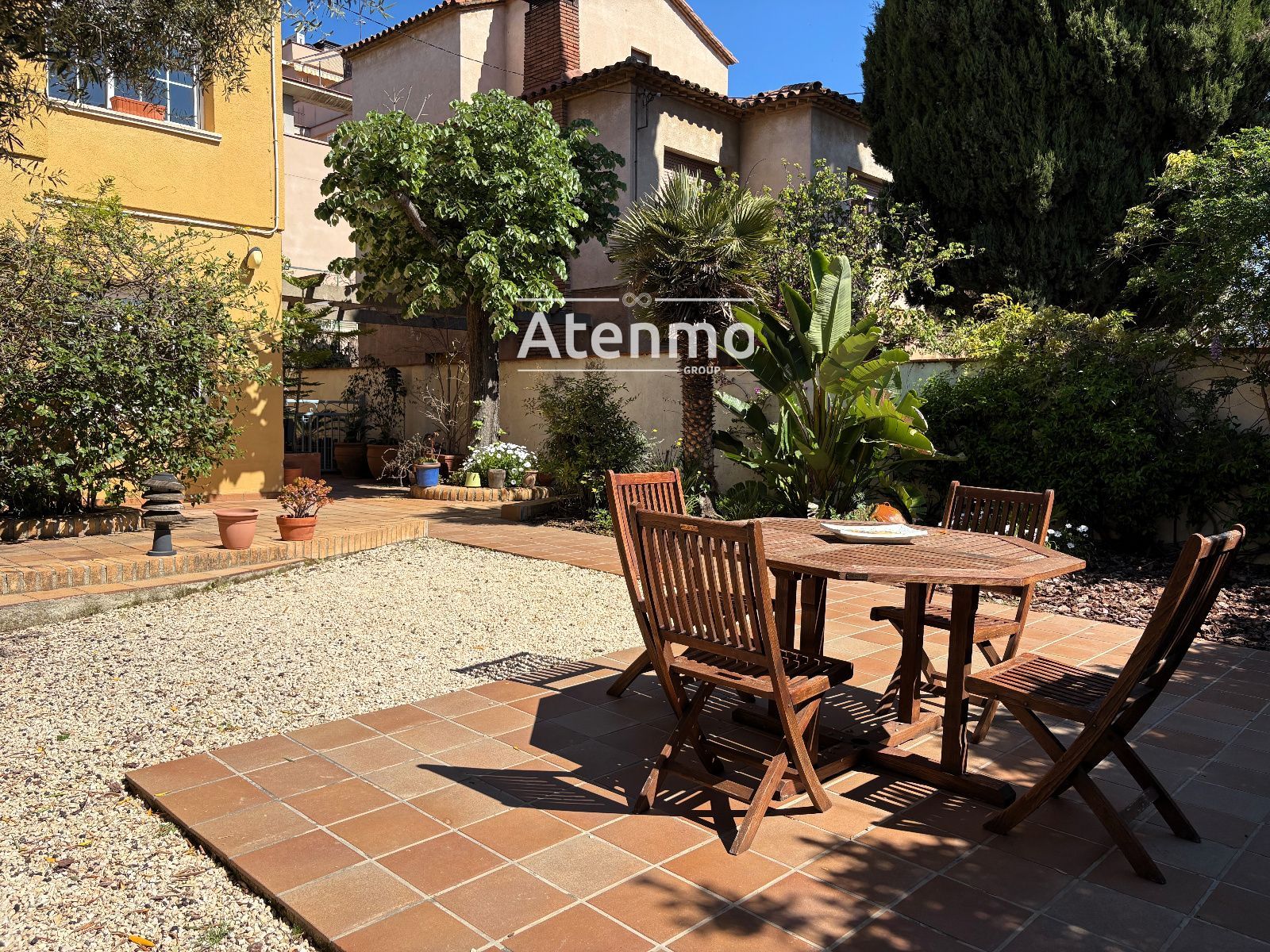 En el exterior, la propiedad dispone de 261 m² de jardín, un espacio amplio y consolidado, con arbolado maduro y distintos ambientes para descansar, comer al aire libre o disfrutar en familia.